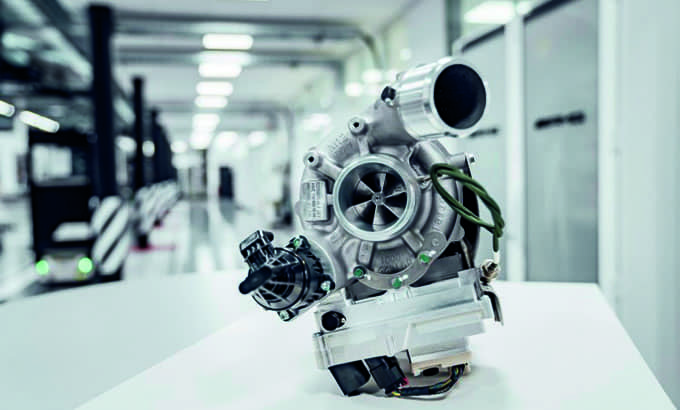 O turbocompressor atinge uma rotação de até 170,000 rpm e desta forma, permite fornecer um caudal de ar extremamente elevado. Pode ser acionado através de um sistema elétrico de bordo de 48 V. O turbocompressor, o motor elétrico e a eletrónica de potência estão ligados ao circuito de refrigeração do motor de combustão para controlar permanentemente a ótima temperatura de funcionamento nos vários regimes.
