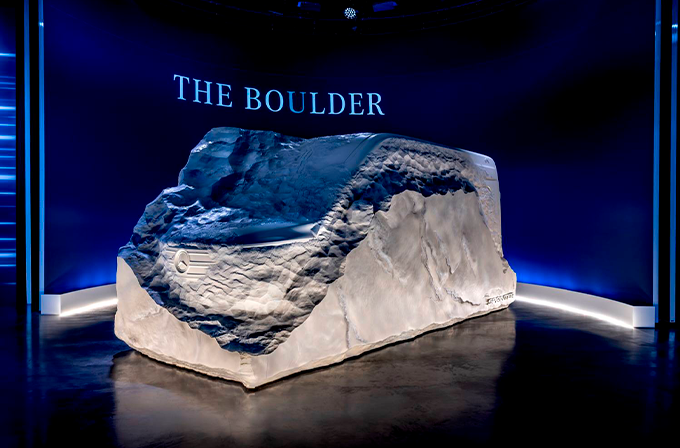 Na véspera do seu aniversário "130 Anos de Transporte", a Mercedes‑Benz Vans traça um paralelo emocionante entre o passado e o futuro: com a apresentação da carrinha de entrega mais antiga do mundo em condições de circular, um veículo de entrega Benz e uma eSprinter atual, a inventora da carrinha relembra a sua história de sucesso única, que começou em 1896. É uma história repleta de soluções de transporte específicas para cada cliente. As carrinhas Mercedes-Benz sempre foram concebidas como ferramentas de trabalho sólidas e fiáveis. E assim continuará a ser no futuro. A empresa enfatiza isso com a revelação de "THE BOuLDER" – uma escultura impressionante e expressiva com aparência de pedra. Ela oferece um primeiro vislumbre de como a Mercedes-Benz está a reinventar a carrinha mais uma vez, mantendo os seus valores fundamentais – robustez, fiabilidade, versatilidade e durabilidade. A escultura com 650 centímetros de comprimento, 275 centímetros de altura e 250 centímetros de largura combina arte e artesanato de uma forma fascinante e oferece uma antevisão da próxima geração da Sprinter. Fresada a partir de uma peça sólida de material, começam a surgir os primeiros contornos e detalhes de design da futura Sprinter. Eles dão uma ideia do design exterior único que está por vir, voltado para as diversas necessidades e exigências dos clientes comerciais. Além disso, a escultura transmite uma impressão das dimensões da futura carrinha Mercedes-Benz.