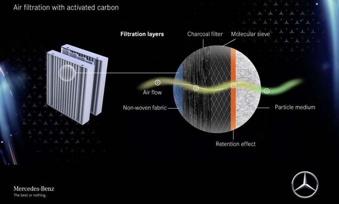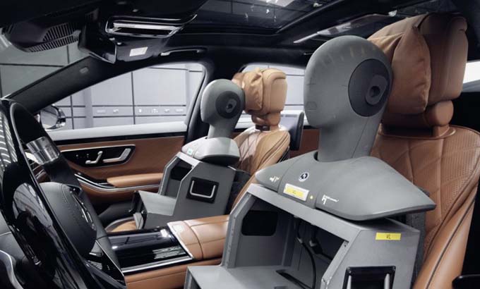 Na eventualidade de uma severa colisão frontal, o airbag traseiro (equipamento opcional do Classe S versão longa) pode reduzir significativamente as cargas que atuam na cabeça e no pescoço dos ocupantes dos bancos laterais traseiros com os cintos de segurança colocados. O airbag frontal do banco traseiro é acionado de forma particularmente suave graças à sua inovadora construção, constituída por uma estrutura tubular.