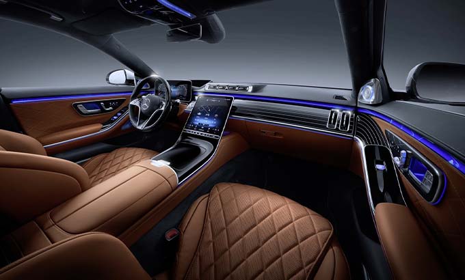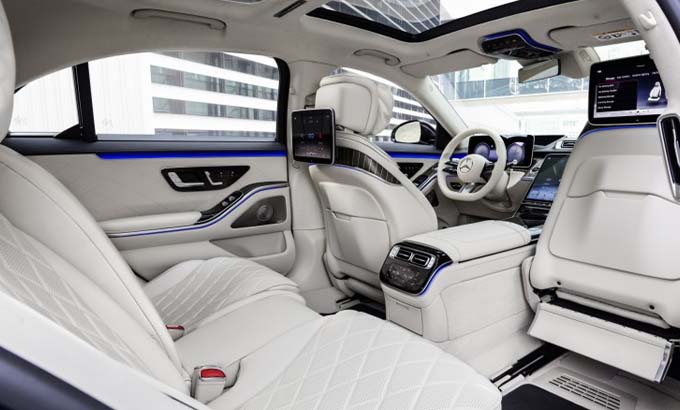 A segunda geração do MBUX (Mercedes-Benz User Experience) será lançada no novo Classe S. Outra característica marcante na qualidade de interface entre o condutor, passageiros e o veículo é o facto de estarem disponíveis até cinco ecrãs no interior do veículo, alguns dos quais com tecnologia OLED. Com o simples pressionar de um botão, o novo ecrã 3D do condutor permite pela primeira vez a perceção espacial com um real efeito 3D graças ao sistema de seguimento ocular. Uma característica igualmente impressionante é o ecrã head-up de grandes dimensões com realidade aumentada. Durante a navegação, por exemplo, as setas de bifurcação animadas são virtual e precisamente projetadas na faixa de rodagem.