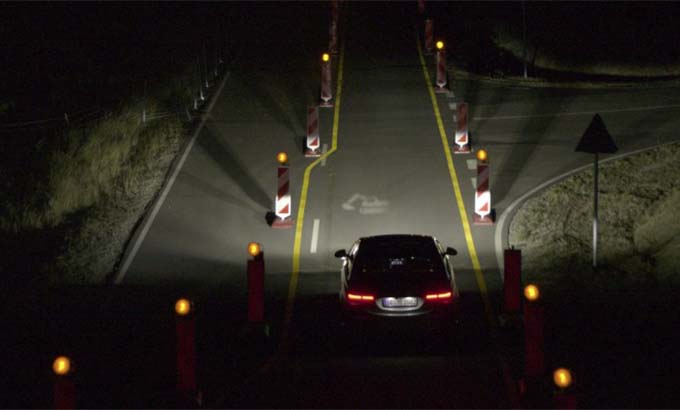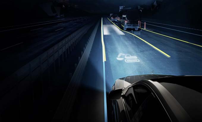 A revolucionária tecnologia de iluminação dos faróis DIGITAL LIGHT (equipamento opcional) permite utilizar funções totalmente novas, por exemplo, a projeção de marcas auxiliares ou sinais de aviso na estrada em frente ao veículo. Em cada farol, o sistema DIGITAL LIGHT integra um módulo de iluminação com três LEDs de elevada potência, cuja luz é refratada e direcionada por 1.3 milhões micro espelhos. A resolução total é, portanto, superior a 2.6 milhões de pixéis.