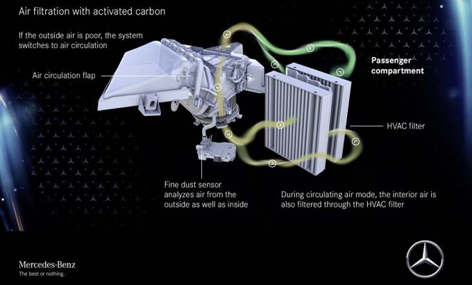 Utilizando sensores no interior da viatura e algoritmos de aprendizagem, o Assistente Interior MBUX reconhece e antecipa as pretensões e intenções dos ocupantes. Isto é realizado através da interpretação da direção da cabeça, dos movimentos das mãos e da linguagem corporal, respondendo com as correspondentes funções do veículo. Por exemplo, se o condutor virar a cabeça para o lado do vidro traseiro, o Assistente Interior abre automaticamente a cortina de proteção solar.