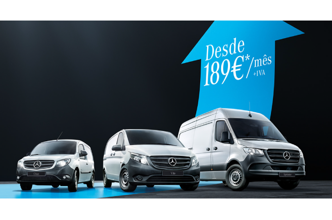 *Exemplo Citan Furgão 108 CDI/27 Active em Select & Drive Aluguer Operacional 189,34€/mês, com prazo contratual de 60 meses, quilómetros máximos percorridos de 20.000/ano e entrada inicial de 2.390,48€. Inclui Extensão de garantia para 5 anos ou 250.000 kms, ISV, SIGPU, SIGOU e despesas de legalização e transporte. Acresce IVA à Taxa Legal em vigor. Valores sujeitos a alteração de impostos e taxas em vigor e propostas condicionadas à aprovação da Mercedes Benz-Financiamento. Consumo combinado (l/100km): 4,3. Emissões CO2 (g/km): 112. Campanha válida para propostas aprovadas até 30-09-2019.