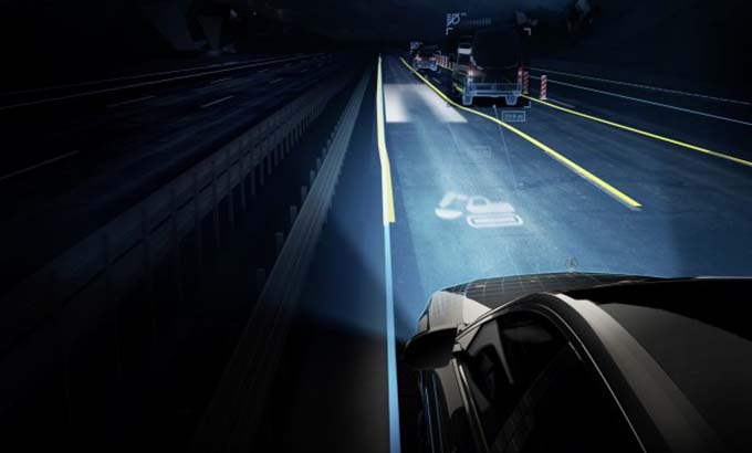 - A área útil do ecrã head-up de realidade aumentada corresponde à de um ecrã com uma largura diagonal de 77 polegadas.