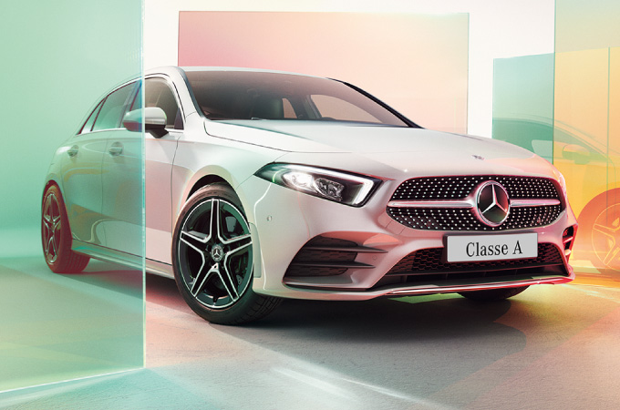 > Exemplo para Classe A 180d em contrato Select&Drive Aluguer Operacional desde 250€/mês, prazo contratual 60 meses, 150.000 km máximos percorridos e entrada inicial 7.025€. Comissão de gestão mensal e despesas de legalização e transporte incluídas. Imagem da viatura não contratual e IVA incluído à Taxa Legal em vigor.