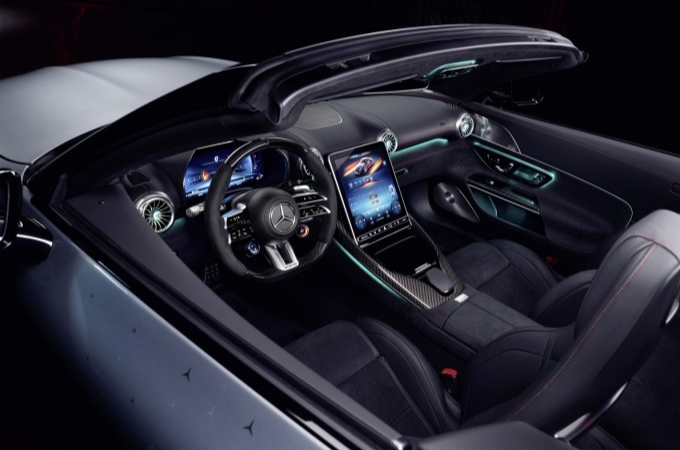 Para assinalar o fim da temporada de 2022 de Formula 1, a Mercedes-AMG apresenta um modelo especial do SL 63 4MATIC+ (consumo de combustível em ciclo combinado: 13.2–12.8 l/100 km, emissões de CO2 em ciclo combinado: 300‑291 g/km)[1]. Reflete o visual do monolugar de competição Mercedes-AMG F1 W12 E PERFORMANCE. A graduação da cor, desde o prata tecnológico metalizado até ao preto obsidiano metalizado, é inspirada pelo modelo da classe rainha do desporto automóvel. O mesmo se aplica ao padrão de estrelas nos flancos do veículo e aos contrastes das cores PETRONAS: estes podem ser encontrados no para-choques dianteiro, nos painéis de proteção das embaladeiras laterais e no difusor traseiro. A acrescentar a isto estão as jantes de liga leve AMG de 21 polegadas de 10 raios duplos em preto mate, com flanges dos aros na cor PETRONAS. A capota de lona elétrica tem a cor preto.