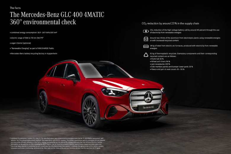 - A avaliação do ciclo de vida, verificada de forma independente, revela o desempenho de sustentabilidade do novo GLC totalmente elétrico