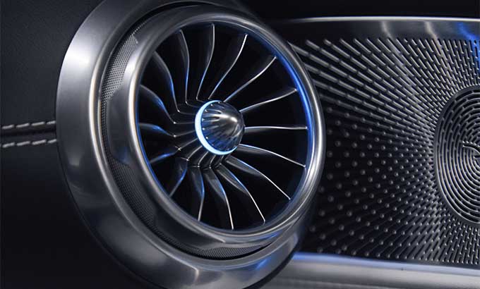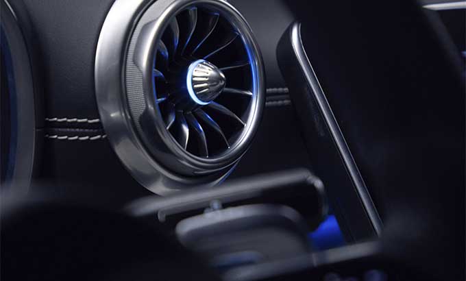 O painel de instrumentos simétrico foi concebido como uma notável asa escultural e está estruturado em duas secções, superior e inferior. Um dos destaques são as recém-desenvolvidas quatro saídas de ventilação galvanizadas em forma de turbina. As suas superfícies são unidas ao painel de instrumentos na forma de cúpulas salientes. A secção inferior do painel de instrumentos evolui suavemente desde a consola central, ligando continuamente os dois elementos.