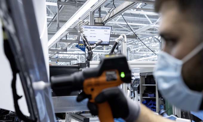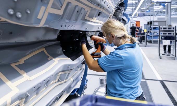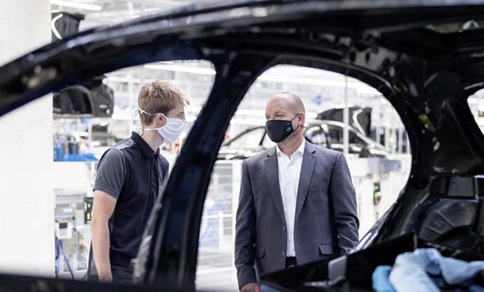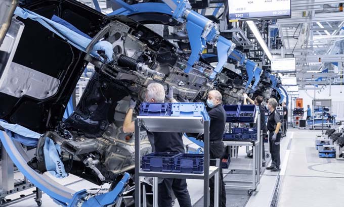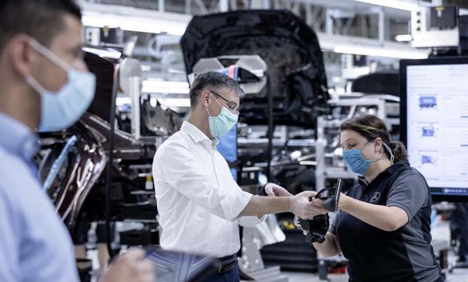 De modo a permitir a realização de quaisquer melhorias necessárias, todas as divisões da linha de montagem foram examinadas a nível de adequabilidade ergonómica logo numa fase prematura. Através de uma seleção de sistemas de transporte, os veículos na linha de montagem podem ser colocados nas posições mais favoráveis para os colaboradores trabalharem, por exemplo, através de transportadores rotativos suspensos ou de plataformas móveis. Todas as estações são ajustáveis em altura. Os novos colegas e os mais experientes trabalham em conjunto na Factory 56, beneficiando mutuamente como uma equipa.