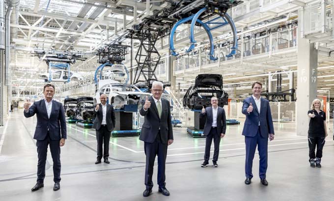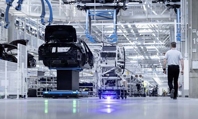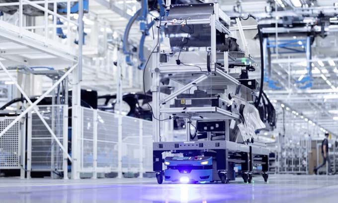 O sistema de montagem do futuro fornece uma estrutura mais flexível a todo o processo de produção. As designadas TecLines servem para evitar pontos fixos no processo de montagem, melhorando a flexibilidade de toda a fábrica e permitindo juntar todas as tecnologias complexas da fábrica num único ponto. Isto significa que o trabalho de conversão necessário para a integração de novos modelos, por exemplo, será mais fácil de concretizar noutras áreas da divisão de montagem. Nas TecLines, a linha de produção tradicional é substituída por sistemas de transporte não tripulados (autónomos). Para integrar um novo produto e incorporar qualquer novo equipamento tecnológico associado, apenas será necessário alterar o percurso do veículo autónomo (AGV). Na Factory 56 encontram-se em operação um total de mais de 400 veículos autónomos.