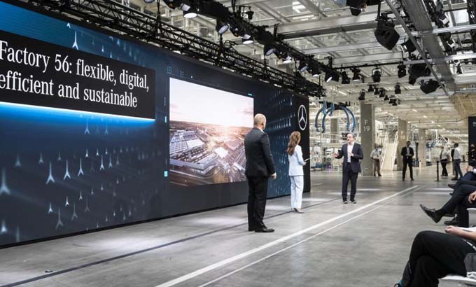 Flexível, digital, eficiente e sustentável: a Factory 56 incorpora o futuro da produção na Mercedes-Benz e estabelece novas referências na indústria automóvel. Com um investimento de aproximadamente 730 milhões de euros, a fábrica nas instalações da Mercedes-Benz em Sindelfingen é um claro compromisso com a Alemanha como um polo empresarial. No total, a Mercedes-Benz irá investir cerca de 2.1 mil milhões de euros nas instalações de Sindelfingen. Ao mesmo tempo, a empresa irá aumentar a eficiência na Factory 56 em 25% comparativamente à anterior linha de montagem do Classe S. A produção na Factory 56 é caracterizada pela máxima flexibilidade; isto aplica-se ao número de modelos produzidos, ao volume de produção bem como ao escoamento dos materiais. Novos modelos – desde compactos aos SUVs, incluindo cadeias cinemáticas convencionais, híbridas plug-in e elétrica – podem ser integrados na produção em série em apenas alguns dias. A produção pode ser rápida e flexivelmente ajustada para satisfazer a procura pelo mercado. Em conformidade com a iniciativa Ambition 2039, a Factory 56 será uma fábrica neutra em carbono, cujas necessidades a nível de energia serão extremamente reduzidas. Isto só é possível, entre outros fatores, devido ao seu inovador conceito de energia com um sistema fotovoltaico, uma rede de distribuição de energia de corrente contínua e sistemas de armazenamento de energia que utilizam baterias reutilizadas de veículos. Tecnologias e processos inovadores foram implementados de forma consistente e abrangente em toda a linha de montagem, fornecendo o melhor apoio possível aos colaboradores durante o seu trabalho diário. O conceito da Factory 56 será gradualmente aplicado a todas as fábricas de veículos da Mercedes-Benz em todo o mundo.