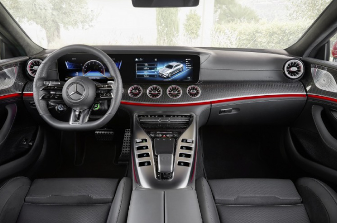 O AMG GT 63 S E PERFORMANCE é o novo porta-estandarte da série de modelos e está particularmente bem equipado. Recebeu todos os aperfeiçoamentos do mais recente facelift, como a suspensão AMG RIDE CONTROL+ com novo sistema de amortecimento. De série está também disponível o adaptado sistema de travões compósitos cerâmicos de elevado desempenho AMG e o sistema multimédia MBUX com ecrãs específicos de um modelo híbrido.