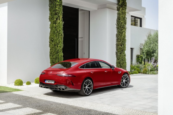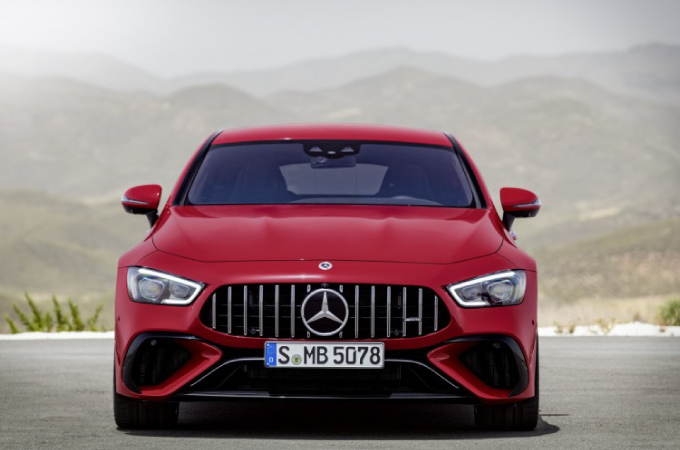 O design expressivo com uma secção dianteira baixa, carroçaria musculada, superfície vidrada de baixa altura e uma "fastback" dinâmica destacam os genes desportivos do coupé de quatro portas. Outro elemento atraente é o para-choques dianteiro característico, que é baseado no design do AMG GT de duas portas. Aparenta ser produzido a partir de um único molde e combina homogeneamente com o design dinâmico de todo o veículo. As entradas de ar exteriores são mais largas e mais orientadas para o centro do modelo. O fluxo de ar é direcionado para os permutadores de arrefecimento nas cavas das rodas através de três aletas verticais.