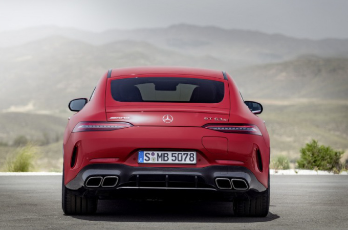 Na traseira destacam-se exclusivos elementos distintivos como o para-choques traseiro com tampa da tomada de carregamento integrada e a designação do modelo destacada na cor vermelho. Com o modelo híbrido, a AMG também está a introduzir duplas ponteiras de escape trapezoidais com saída em forma de trompa. A insígnia "E PERFORMANCE" nas asas indica uma cadeia cinemática híbrida. Tal como em toda a série de modelos, estão disponíveis várias cores de pintura e equipamentos para versão híbrida. Por exemplo, está disponível uma seleção de quatro pinturas de acabamento mate, cinco pinturas metalizadas e duas pinturas não metalizadas. Além disso, existem sete novas pinturas num vasto leque de personalização. O design exterior pode ser ainda mais personalizado, por exemplo, com o novo AMG Night Package II ou com uma combinação do Night Package com o Carbon Package. Além disso, estão disponíveis novas jantes de liga leve de 20 e de 21 polegadas, cada uma disponível em duas versões de cor. A edição exclusiva também está disponível para o híbrido desportivo.