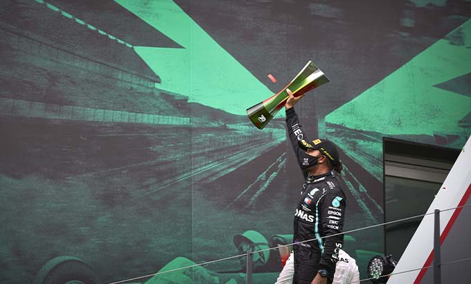 Lewis e Valtteri garantem um duplo pódio no Grande Prémio de Portugal de 2020, com Hamilton a estabelecer um novo recorde de vitórias em corridas de Fórmula 1