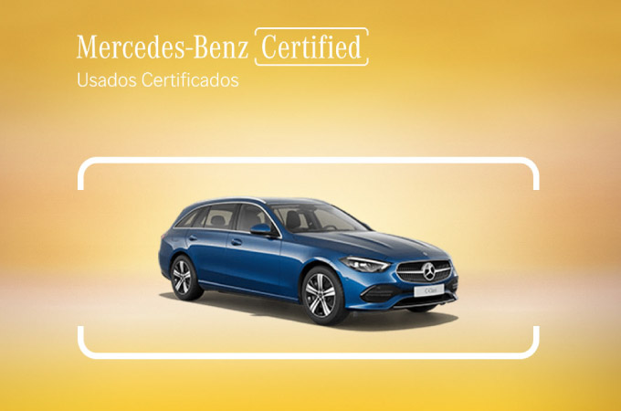 *Exemplo para Mercedes-Benz Classe C 220d Station usado com matrícula de 06/2022, PVP de 49.000€, em contrato de Crédito Automóvel com Reserva de Propriedade para 48 meses / 80.000 km, prestação mensal 395€, entrada inicial 13.095,46€, 47 prestações de 395€, prestação final (VFG) 26.174,95€, montante total do crédito (MTC) 36.547,78€, montante total imputado ao consumidor (MTIC) 45.126,95€, TAN fixa 6,25% e TAEG 7,7%,. Inclui comissão de ativação 195€ e comissão de gestão mensal 4€. Imagem da viatura não contratual. O preço indicativo do veículo não limita ou exclui a atribuição de descontos adicionais ou condições mais favoráveis pelo concessionário e em caso algum determinam a imposição de um preço fixo ou mínimo. Campanha válida para contratos ativados até 29/12/2023 e sujeito à aprovação da Mercedes-Benz Financial Services Portugal SFC SA, com o registo no Banco de Portugal nº0306.