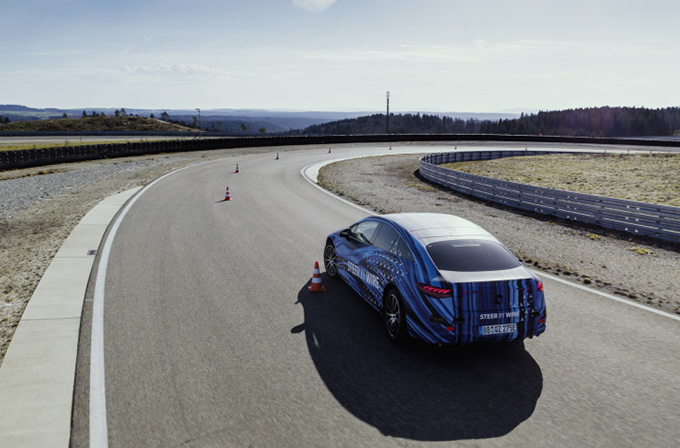 A partir de 2026, a Mercedes-Benz será o primeiro fabricante automóvel alemão a lançar um modelo de produção com direção Steer-by-Wire. Esta tecnologia elimina a ligação física entre o volante e as rodas dianteiras. Em vez disso, os comandos são transmitidos eletronicamente, através de sinais por cabo – ou seja, "by wire".