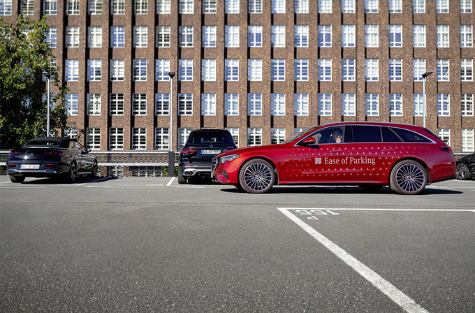 O veículo procura continuamente lugares de estacionamento a velocidades abaixo de 35 km/h e exibe isto no ecrã do condutor com um símbolo azul "P". Também pode detetar lugares de estacionamento muito apertados com apenas 50 centímetros de folga em cada extremidade do automóvel e usa marcações brancas ou estruturas paralelas, como o passeio ou outros veículos estacionados, para orientação. Quando o Mercedes encontra um espaço, uma seta branca aparece no ecrã ao lado do símbolo "P". Após engatar a marcha-atrás, o condutor pode selecionar o lugar de estacionamento e iniciar o processo de estacionamento automatizado. Para lugares de estacionamento perpendiculares adequados, o condutor pode escolher estacionar de frente ou de trás.