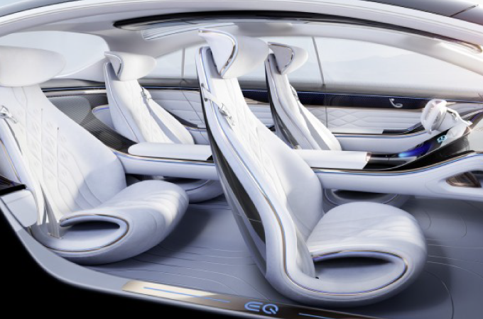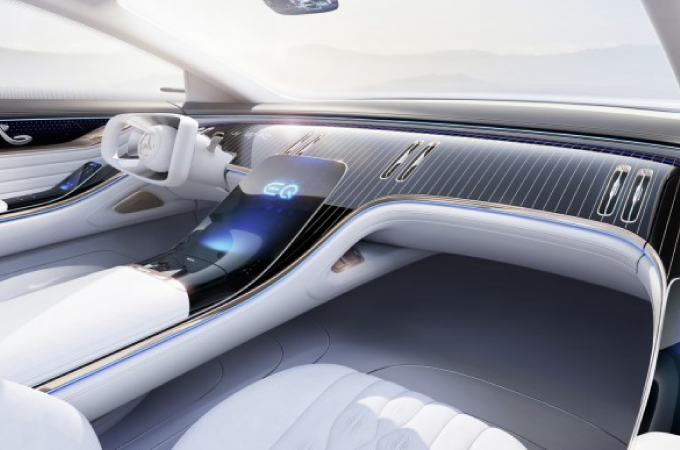 No interior, o Vision EQS é inspirado no mundo dos iates de luxo. Pela primeira vez, todo o tablier está integrado na secção dianteira do habitáculo, formando como que uma "escultura" interior. Com a sua arquitetura espacial profunda e aberta, o cockpit do Vision EQS envolve os ocupantes como o convés de um barco. Esta "escultura" global totalmente integrada e abrangente, composta pelo tablier, consola central e apoios de braços, oferece uma visão sobre o interior dos futuros veículos de luxo da marca.