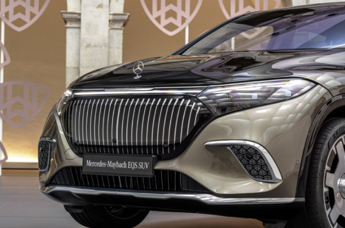 Com o Mercedes-Maybach EQS 680 SUV (dados provisórios: consumo de energia elétrica em ciclo combinado: 24.4-22.5 kWh/100 km; emissões de CO2 em ciclo combinado: 0 g/km)[1], a Marca lendária apresenta a sua primeira série de modelos totalmente elétricos. É baseado na tecnologia do EQS SUV da Mercedes-EQ e combina a sua perfeição tecnológica com a exclusividade da Maybach – em sintonia com o lema de Wilhelm Maybach: “O que é bom também tem de ser bonito”. O exterior especial com uma estrela Mercedes vertical no capot e um painel preto atrativo na secção dianteira, que transporta a grelha específica da Maybach para a era da mobilidade elétrica, assegura uma aparência inconfundível. A pintura opcional de duas cores também é uma característica própria da Marca. Graças aos materiais de excelente qualidade, à mão de obra minuciosa e aos detalhes exclusivos, o interior espaçoso proporciona uma experiência de conforto completa com um efeito acolhedor e envolvente. Com a sua interpretação consistente de Luxo Moderno, o Mercedes-Maybach EQS SUV estabelece novas referências no segmento SUV totalmente elétrico de luxo topo de gama.