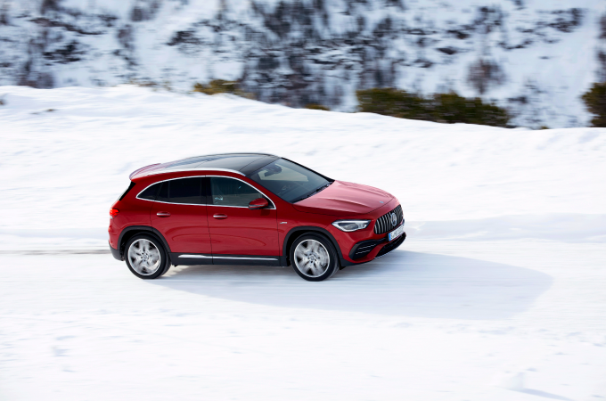 Dinamismo, agilidade e desempenho – estes três atributos caracterizam o sistema de tração integral de série do novo AMG GLA 35 4MATIC.