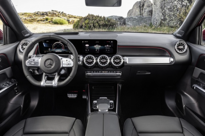 O novo GLB 35 4MATIC é o primeiro veículo compacto da Mercedes-AMG que disponibiliza opcionalmente uma terceira fila de bancos, constituída por dois bancos individuais adicionais, mais a regulação longitudinal da segunda fila de bancos e a funcionalidade EASY-ENTRY. A segunda fila de bancos pode ser repartida na proporção de 40:60. Os bancos na terceira fila acomodam passageiros com uma altura de até 1.68 metros. Os bancos podem ser arrumados quando não utilizados para ficarem rebatidos ao nível do piso do compartimento de bagagens de modo a permitirem um aumento da capacidade do compartimento de bagagens.