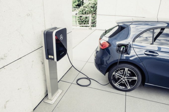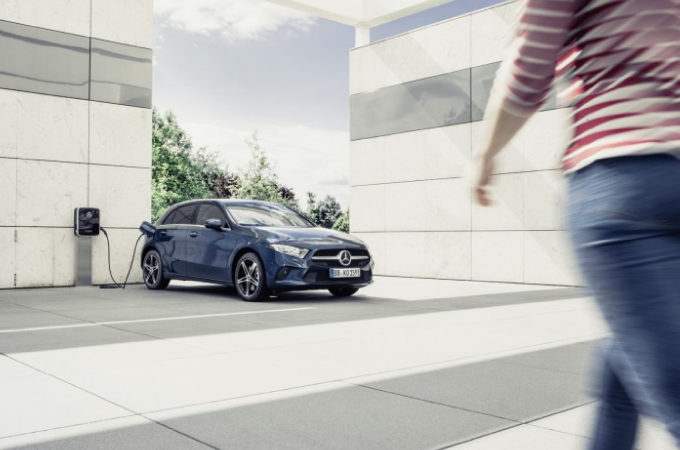 Para armazenar a energia elétrica é utilizada uma bateria de alta tensão de iões de lítio com uma capacidade de 15.6 kWh. Pode ser carregada numa fonte de alimentação externa. Os modelos "A 250e" e "B 250e" podem ser carregados com corrente alternada ou corrente contínua. Os veículos estão equipados com uma tomada de carregamento que está localizada nos respetivos painéis laterais da carroçaria do lado direito. Isto significa que os modelos compactos híbridos plug-in podem ser carregados numa Wallbox de 7.4 kW com corrente alternada (AC) em 1 hora e 45 minutos, desde um estado de carga de 10% até 100%. Relativamente ao carregamento com corrente contínua (DC), a bateria pode ser carregada desde um estado de carga de 10% até 80% em cerca de 25 minutos.