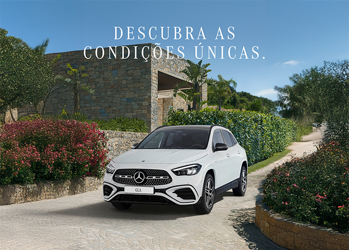 1) Exemplo Mercedes-Benz GLA 250e em contrato Select & Drive Aluguer Operacional com renda mensal 325 €, prazo contratual de 48 meses, 80.000 km totais e entrada inicial 13.772,48 €. Inclui fee de gestão e isento de comissão de ativação. Inclui despesas de legalização e transporte. IVA incluído à Taxa Legal em vigor. Consumo combinado (l/100km): 1,2 a 1,0. Emissões CO2(g/km) 28 a 22. Valores sujeitos a alteração de impostos e taxas em vigor. Campanha válida para matrículas até 30-09-2025 e contratos ativados até 31-10-2025 e sujeitas à aprovação da Mercedes-Benz Aluguer de Veículos Lda. WLTP | Consumo combinado (l/100km): 2,5 a 1,0. Emissões CO2(g/km) 57 a 22.