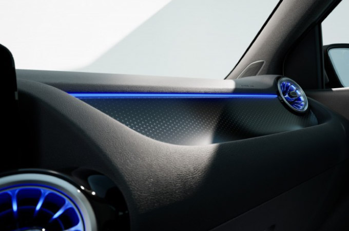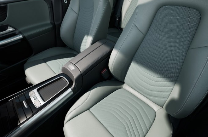 Uma gama atrativa de cores e materiais de interior permite um elevado grau de personalização. Na versão base, os bancos foram adicionalmente aperfeiçoados com os seus revestimentos ARTICO tridimensionais e com o melhor conforto ergonómico. A versão Progressive oferece a exclusividade tão característica da Mercedes nas cores preto, preto/macchiato e o novo preto/cinzento sage. Neste caso, o revestimento dos bancos também pode ser escolhido com revestimento em pele na cor preto ou castanho bahia. Os elementos de revestimento recém-desenvolvidos com padrão de estrelas criam um destaque emocionante no interior. A versão AMG é a versão mais desportiva do novo Classe B, com o interior revestido em ARTICO/MICROCUT preto e pesponto contrastante vermelho.