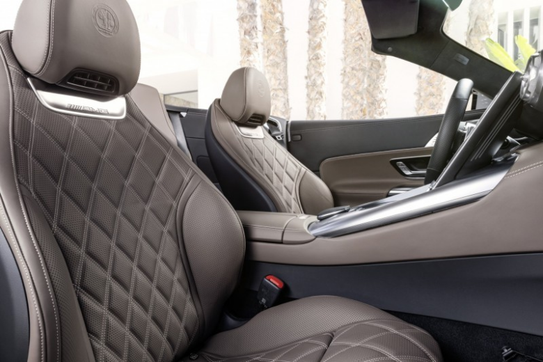 O interior do Mercedes-AMG SL é caracterizado por acabamentos luxuosos e equipamentos inovadores. O display central de 11,9 polegadas com um efeito suspenso, pode ter a sua inclinação ajustada eletricamente de 12° a 32°, para evitar reflexos de luz quando a capota estiver aberta. O SL conta ainda com a mais recente geração de telemática NTG7.