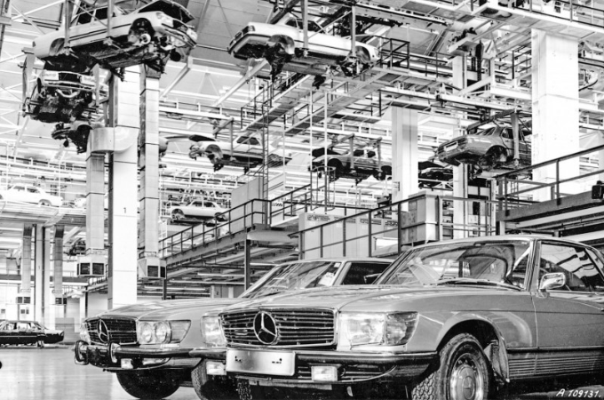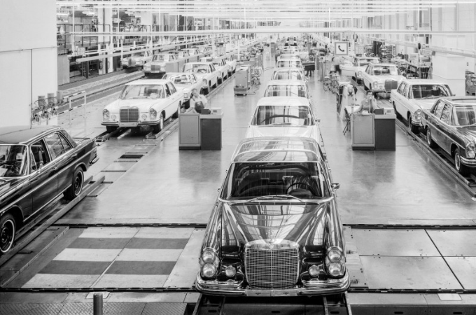 - 1972: A primeira linha de transferência totalmente robotizada da Europa entra em funcionamento na oficina de carroçarias | Início da produção da série de luxo 116, designada de "Classe S" pela primeira vez.
