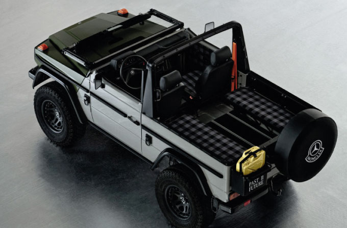 Inspirado no icônico Classe G dos anos 90, o “Projeto Classe G Passado II Futuro” simboliza uma reinterpretação que preserva a identidade robusta do veículo, ao mesmo tempo que apresenta um design contemporâneo e exclusivo. NIGO restaurou e modernizou o clássico Classe G, integrando detalhes como uma pintura bicolor em verde azeitona e cinzento, jantes em aço preto e um para-brisas rebatível. A criação inclui também um sistema de som personalizado, concebido pelo artista Devon Turnbull, proporcionando uma experiência sonora imersiva e estética. Esta peça reflete o conceito de colaboração e inovação entre as duas marcas e representa um marco no design automóvel moderno.