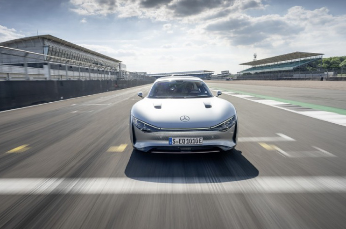 Depois de se deparar com um encerramento de autoestrada e de percorrer o exigente desvio por estrada nacional próximo de Estugarda, o VISION EQXX atravessou a fronteira com França junto a Estrasburgo e posteriormente seguiu viagem através do norte de França em autoestrada até Calais, onde entrou no eurotúnel. Continuando a sua viagem no Reino Unido, apanhou a M25 próximo de Londres e posteriormente parou no Mercedes-Benz Grand Prix em Brackley. A aguardar pela sua chegada estavam os especialistas de Fórmula 1 e de Fórmula E que ajudaram a desenvolver a sua moderna cadeia cinemática. O VISION EQXX prosseguiu então a viagem até Silverstone, onde foi recebido por um convidado especial, o piloto Nyck de Vries. O holandês, que corre pela equipa de Fórmula E da Mercedes-EQ, não foi gentil com o veículo e levou-o até à sua velocidade máxima limitada a 140 km/h na mítica pista britânica. Aproveitando ao máximo a ocasião, completou 11 voltas, utilizando o resto da carga no corredor das boxes.